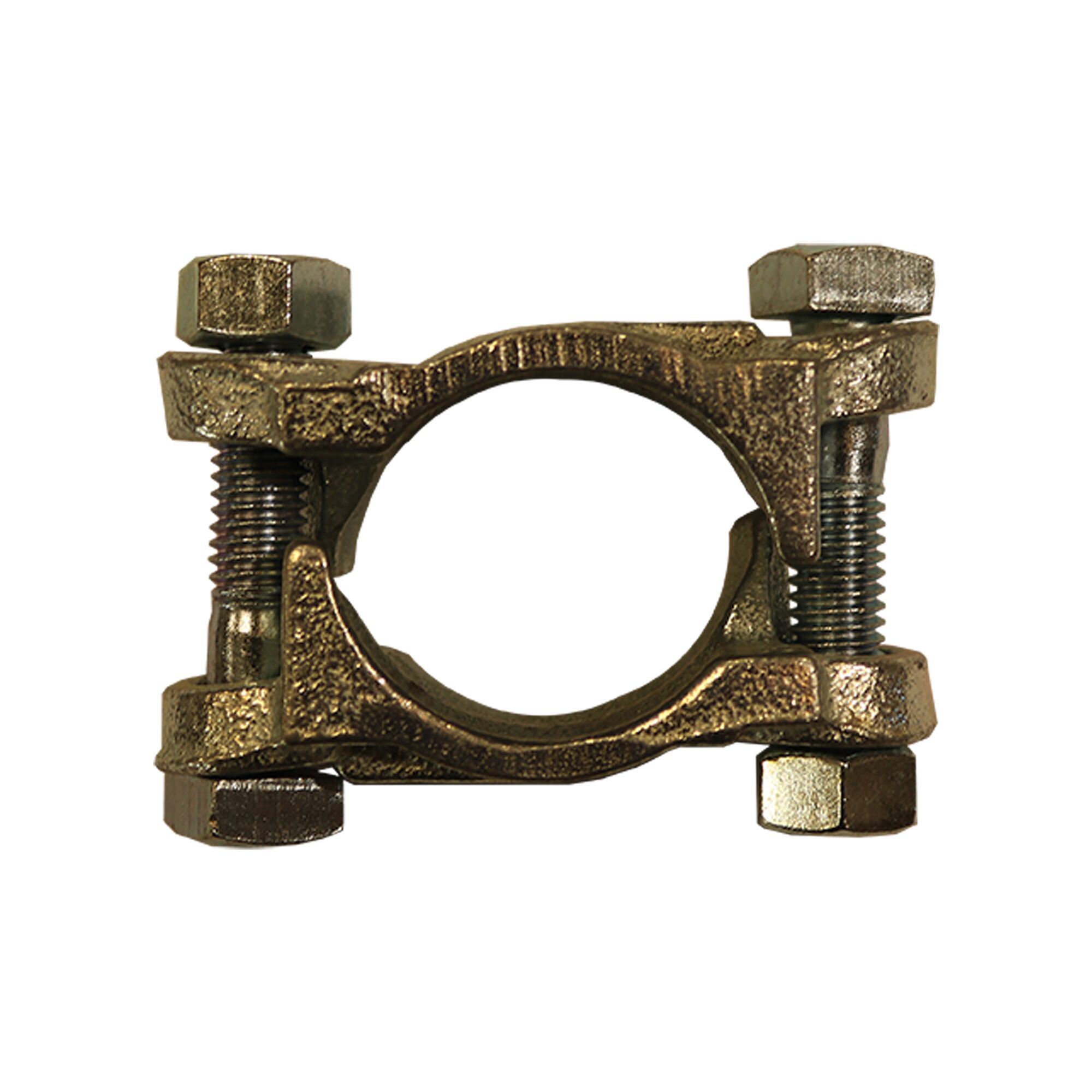 1″ Double Bolt Hose Clamp. Inner surface has dual gripping ridges, bolt lugs are reinforced to prevent bending out of alignment. Plated iron construction.