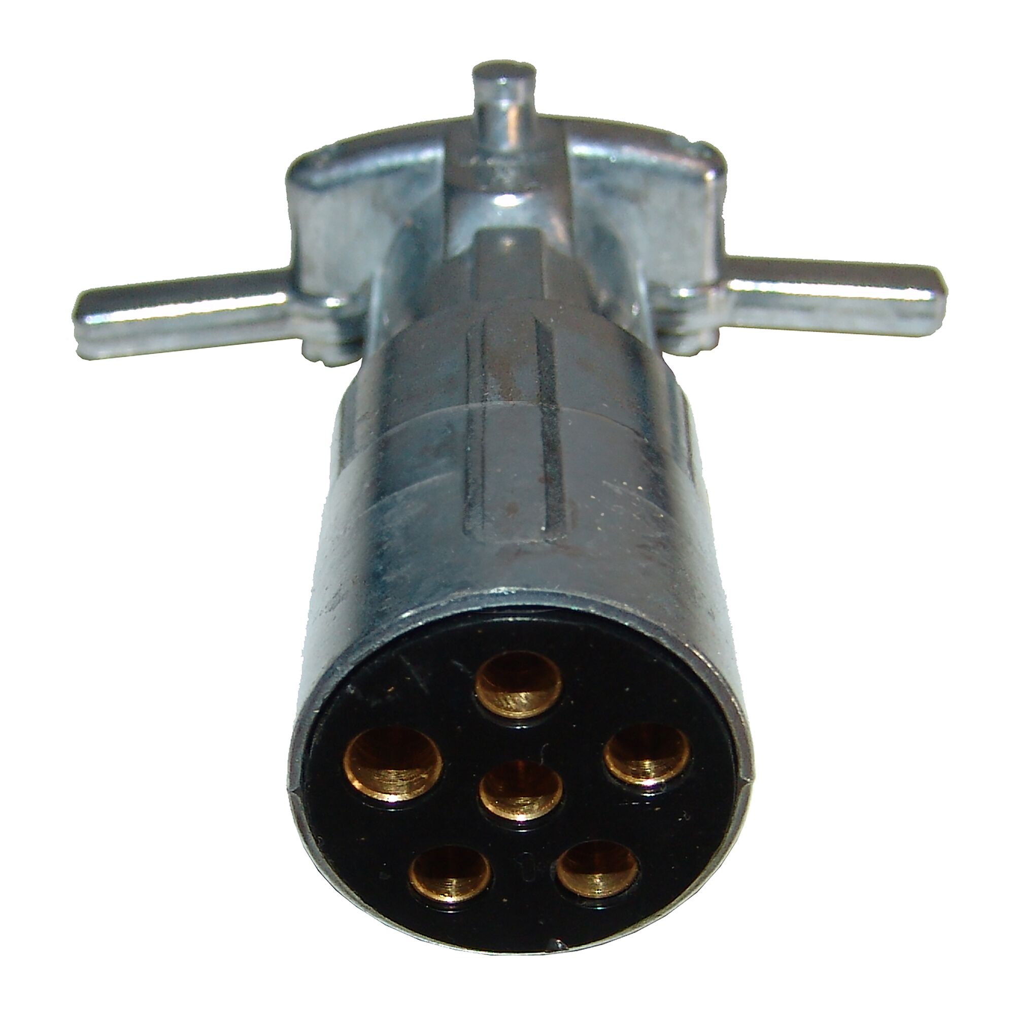 This trailer side, die-cast, 6 pole round connector, will securely connect your vehicle wiring to your trailer. It is made of die-cast zinc that is impact and corrosion resistant