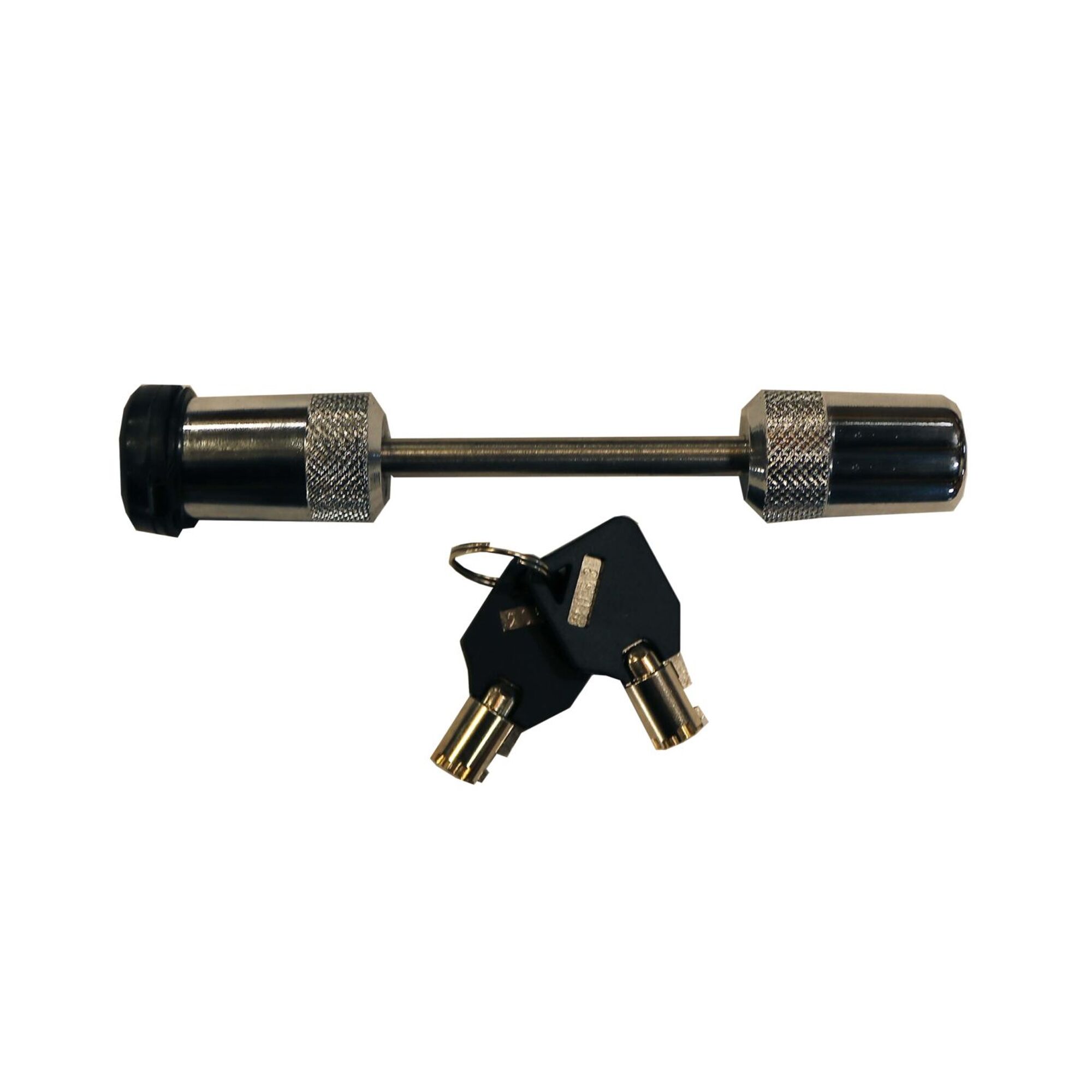 Bulldog Hitch Coupler Lock for Locking Trailer to Truck Hitch. This lock has a hardened 7mm pin for wide lever couplers between 2″ and 2-1/2″. The 1/4 turn lock make installing and removing a breeze. The cap helps to keep dirt and debris out of the locking mechanism. This rugged lock can’t pop open or be false locked. Comes with 2 high quality tubular keys.