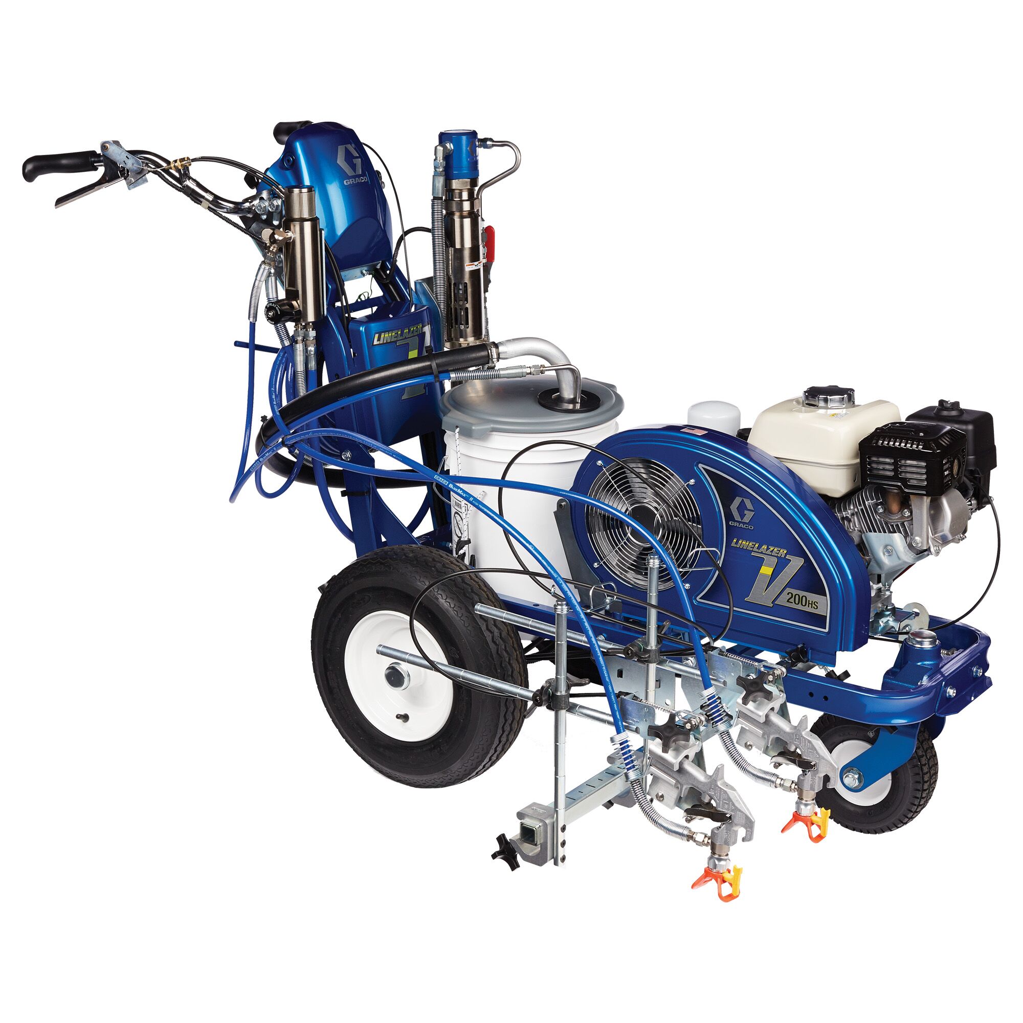 The Graco LineLazer V 200HS is a high-output line striping machine designed for maximum productivity on large-scale jobs. With its powerful hydraulic system, it delivers smooth, consistent performance and precise line quality, even under heavy use. Built for efficiency and durability, the LineLazer V 200HS is the go-to choice for professional contractors tackling roads, highways, and big commercial projects.