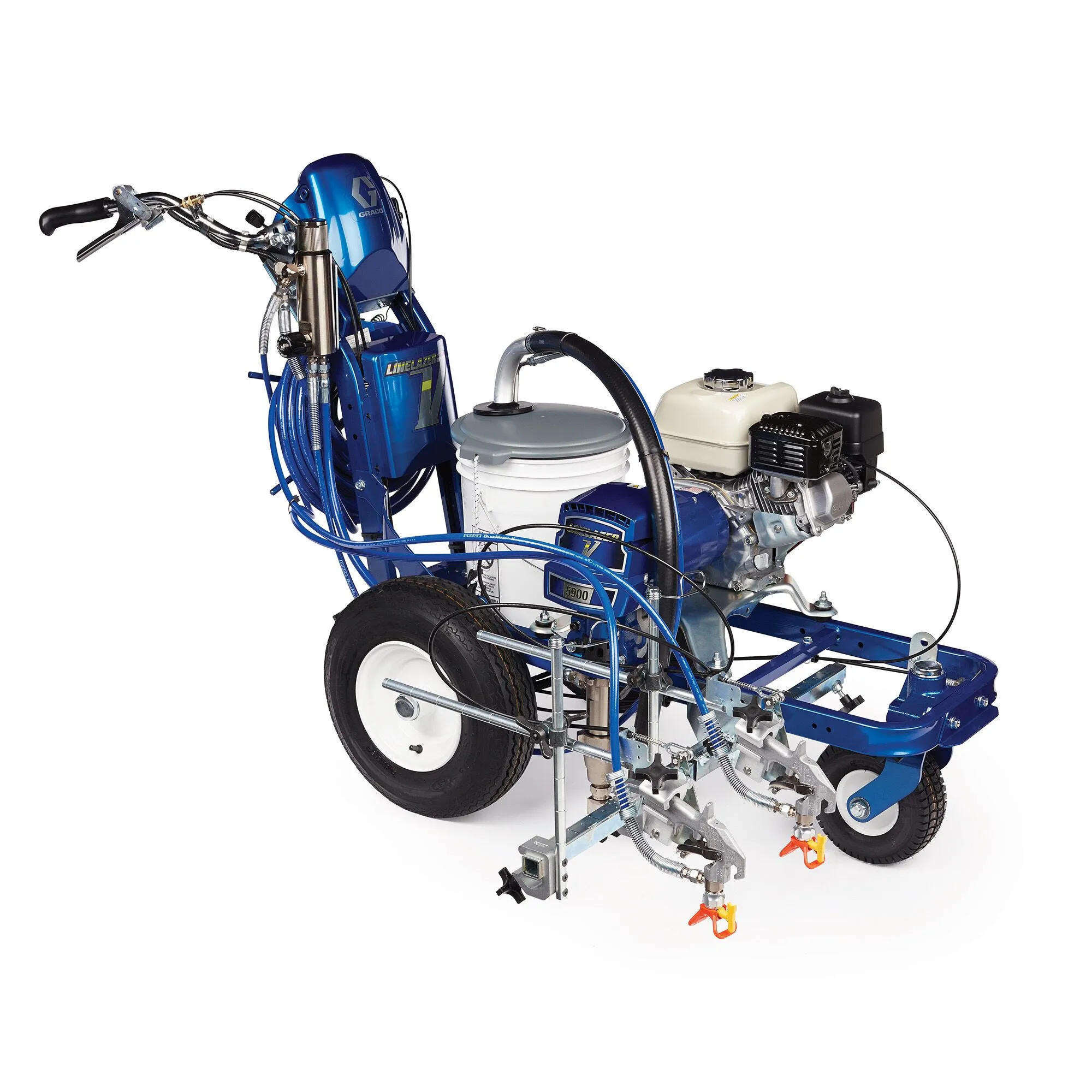The Graco LineLazer V 5900 is a high-performance striping machine built for contractors who take on big projects. With more power and capacity than smaller models, it delivers crisp, consistent lines on roads, highways, parking lots, and athletic fields. Durable and efficient, the LineLazer V 5900 is designed for long days on the job, giving you the reliability and productivity needed for professional results every time.