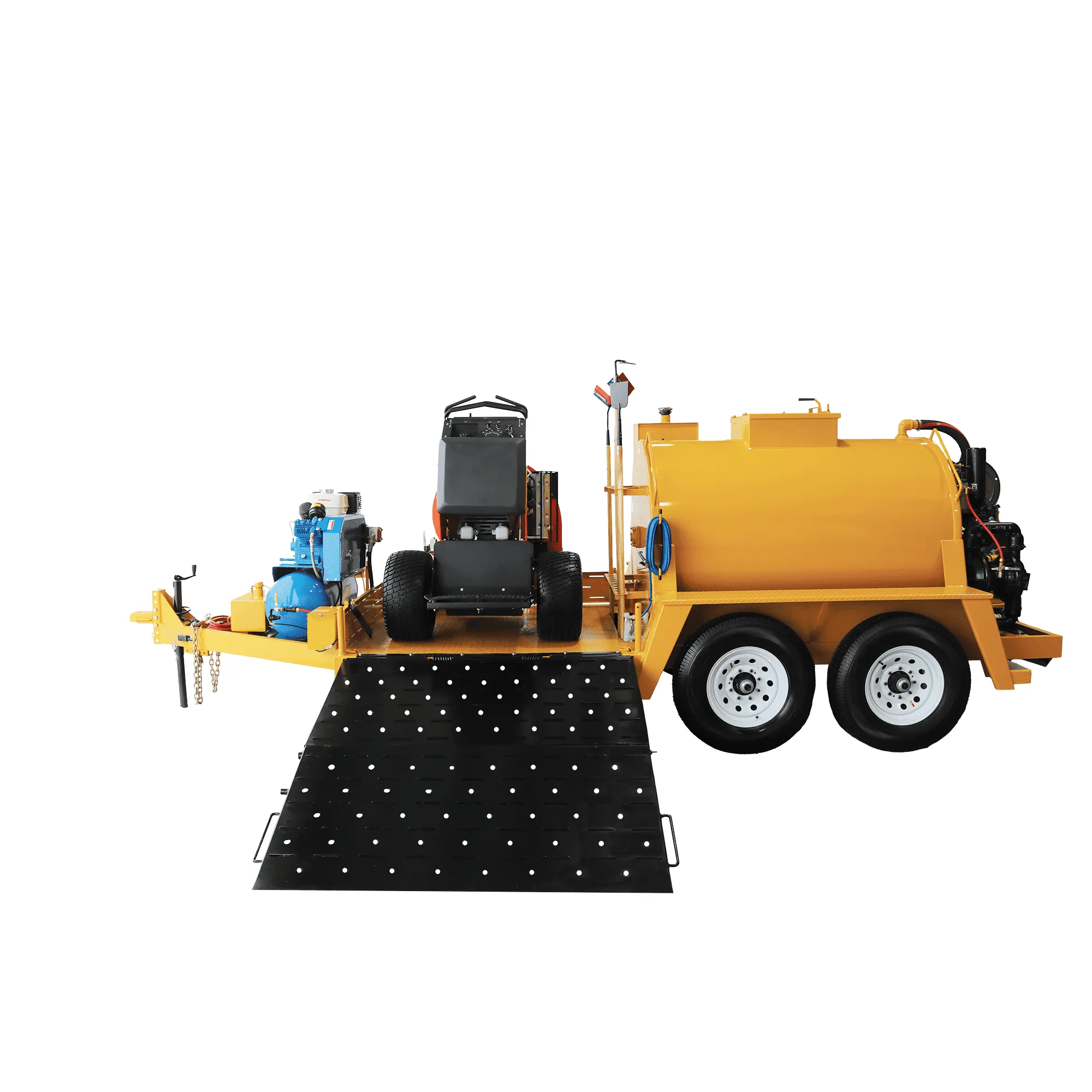 - Forward mounted 30 gallon air compressor powered by an electric start gasoline motor